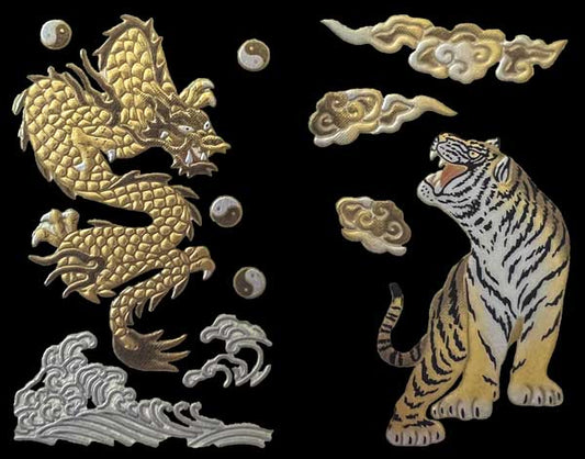 Dragon Over Waves with Tiger Below Clouds - Japanese Gold Lacquer Sticker