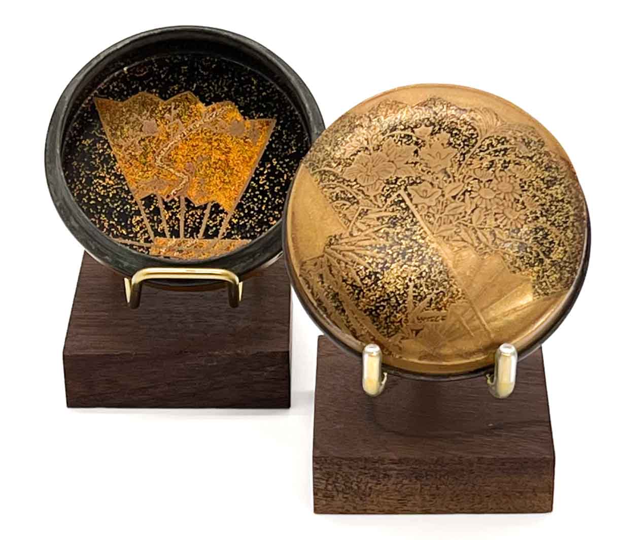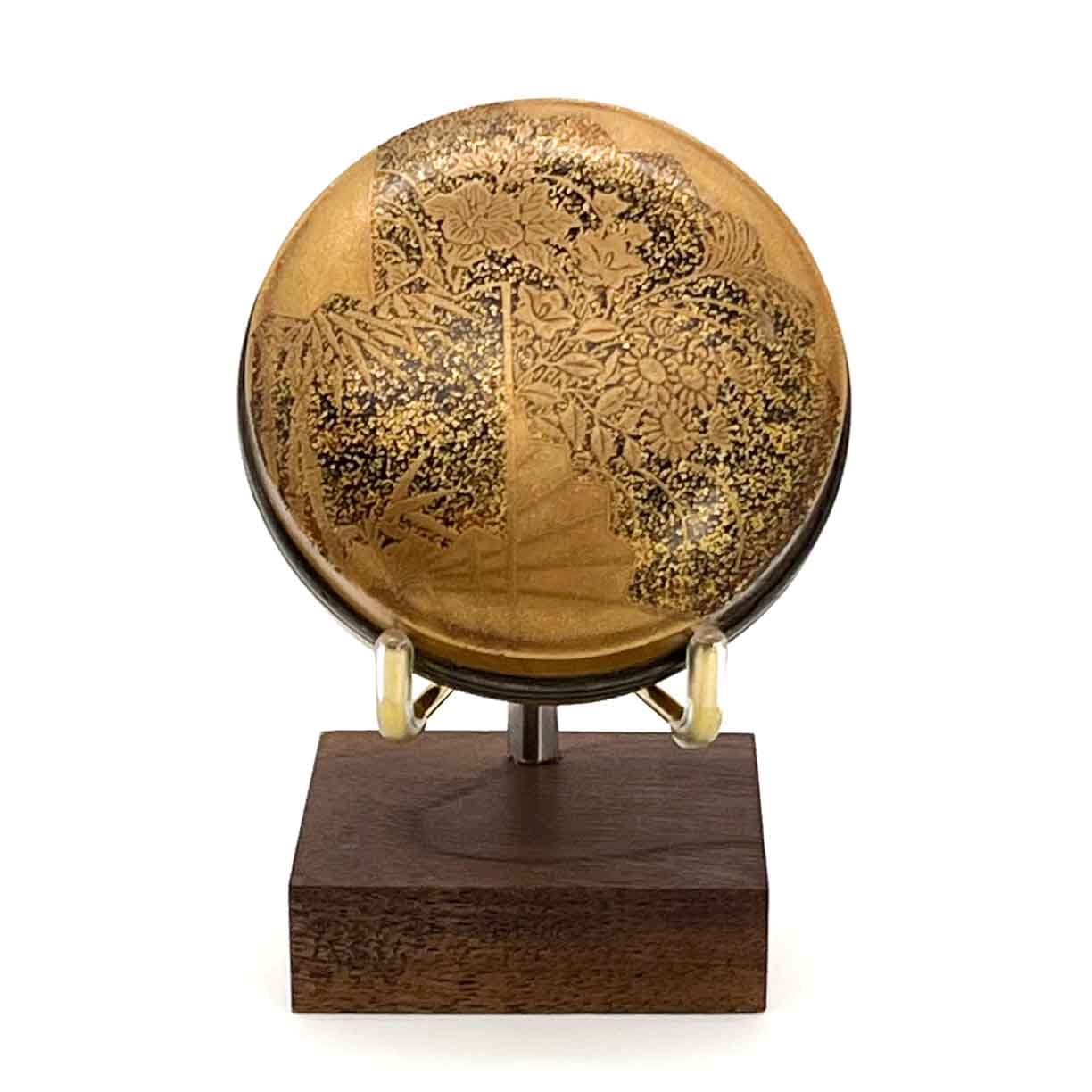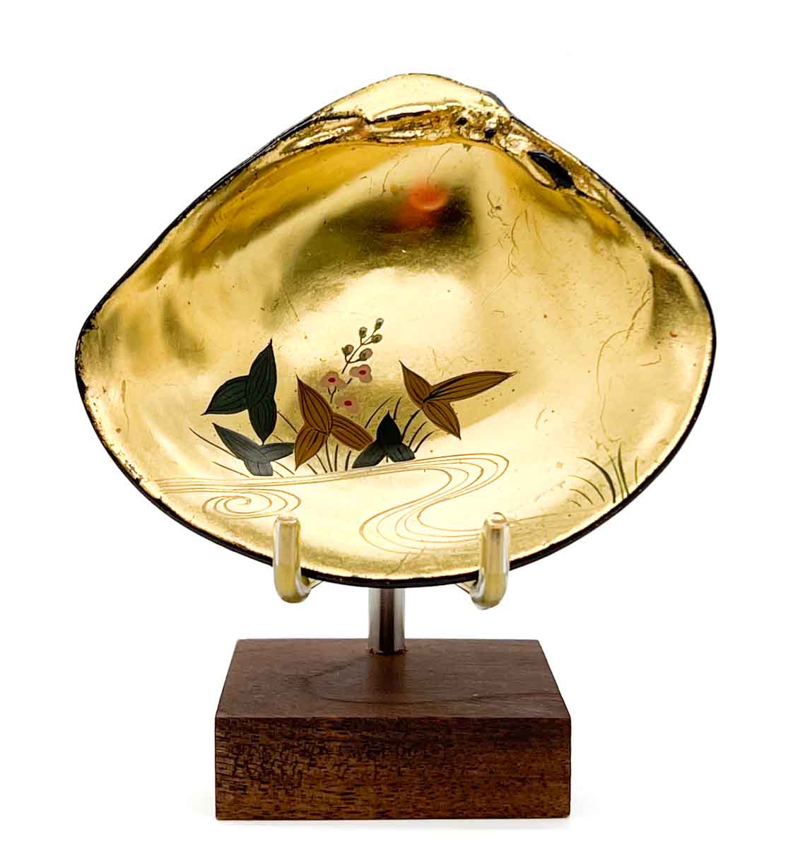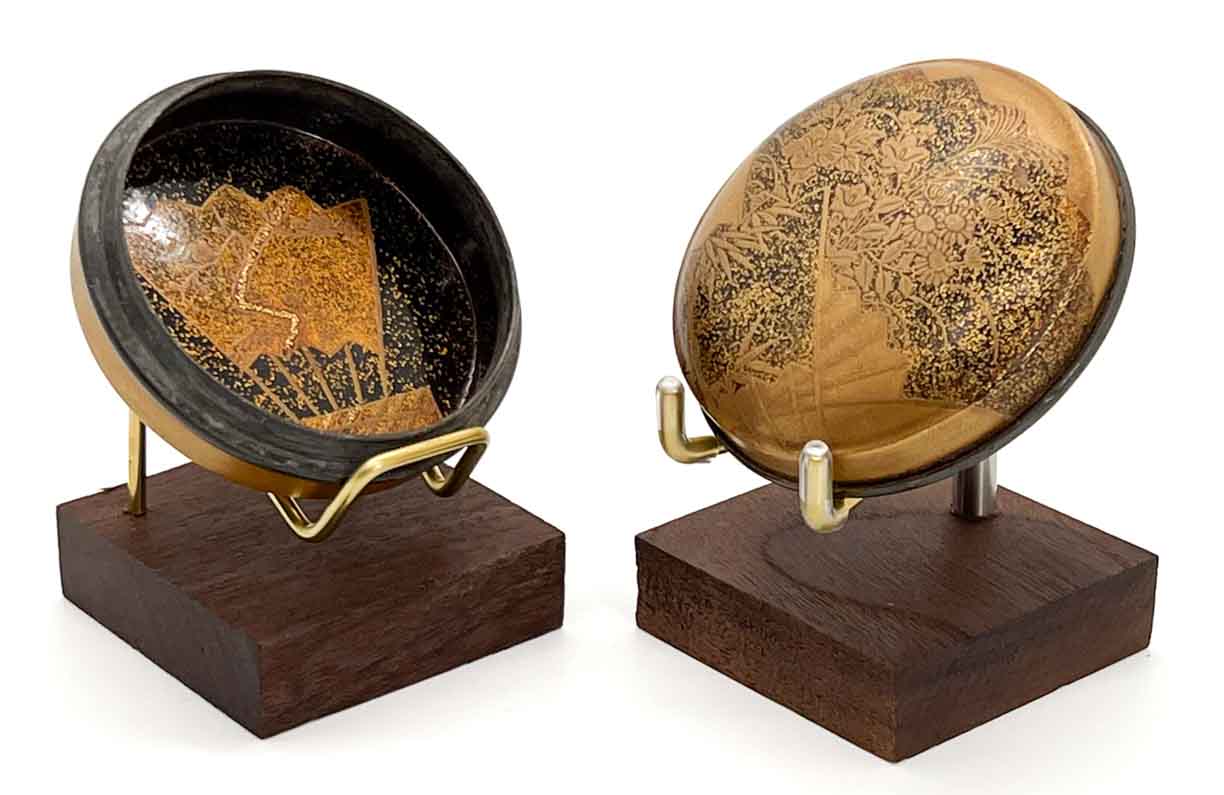This 3-pronged object display stand is well-suited to a number of different art forms including Japanese inro, collectible compacts and cigarette cases, small dishes, and other small decorative art.